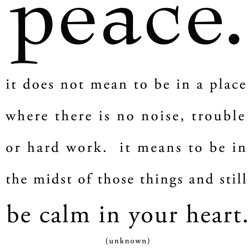 “Peace I leave with you; my peace I give to you. Not as the world gives do I give to you. Let not your hearts be troubled, neither let them be afraid.”